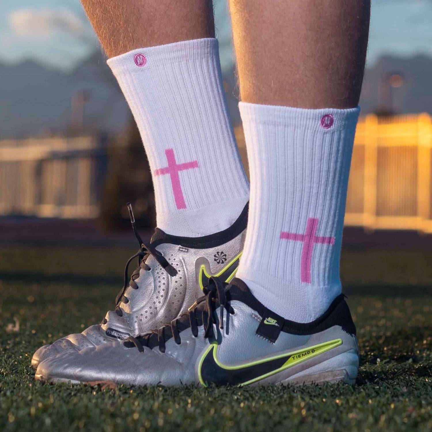 Step up your game with faith and purpose. Our soccer grip socks are designed to support you on the field, enhancing your performance and comfort while reflecting your commitment to Christ. With God's strength, empower yourself to push your limits and achieve victory. Elevate your soccer experience and redefine what's possible, inspired by your faith.